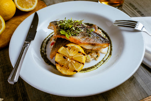 Delicious 8oz wild Catch Branzino on top of Mediterranean rice with rich cilantro, toasted almonds, onion and Parmesan cheese.