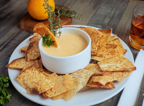Three Cheeses and Caribbean Shrimp Dip Serve With Malanga Root Chips
