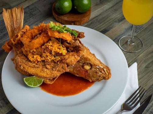 Whole Fried Red Snapper Stuffed With Mamposteao Rice